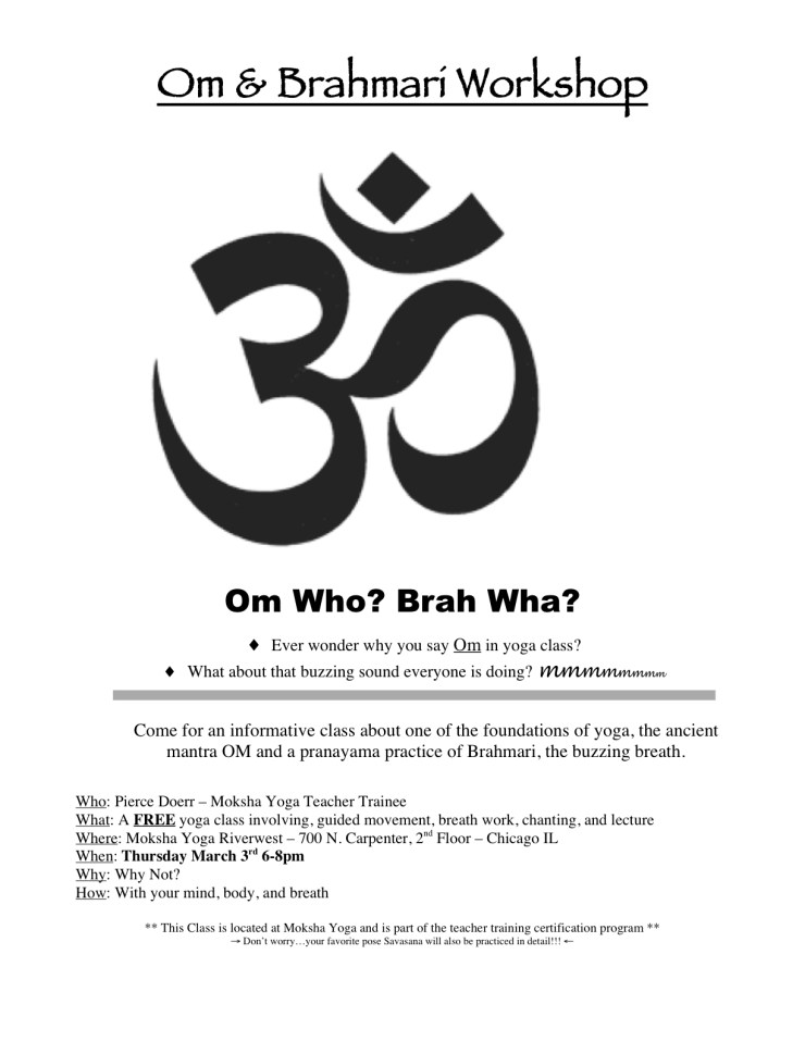 It will be part asana (poses), lecture, chanting, and a pranayama (guided breathing) class focused on OM and Brahmari.